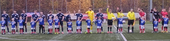 Eine tolle und sehr schöne Überraschung gab es kurz vor dem Spiel, denn di nachstehenden 2 Fotos präsentieren es. Der Nachwuchs-Bereich hatte sich etwas tolles einfallen lassen. Es gab Einlaufkinder aus dem U7 - U8 + U9-Bereich. Eine super Aktion, was sehr gut angekommen ist. Herzlichen Dank für diese sehr, sehr gute Sache. |