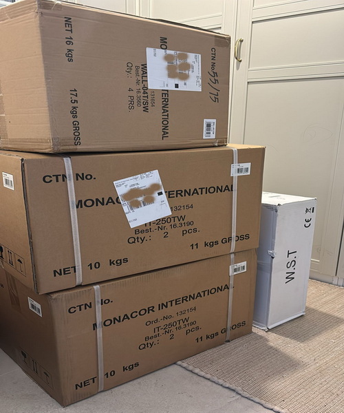 Rechtzeitig zu meinem 90jährigen Geburtstag ist die großzügige Spende für den Fan- und Förderkreis Fußball im TuS Holstein Quickborn von einem für die Öffentlichkeit anonymen Sponsor eingetroffen. Es ist eine für uns lang ersehnte neue leistungsstarke Profi-ELA 40-Sport Beschallungsanlage 100 V ELA - Marke Monacor International - mit einschl. 4 Lautsprechern und 1 Funk-Mikrofon, die für den Kunstrasenplatz im städtischen Quickborner Holsten-Stadion vorgesehen ist. |